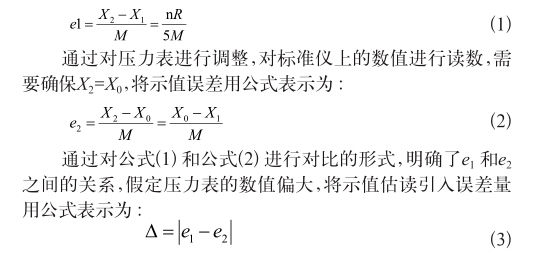 在對壓力表進行檢定時,主要是運用變動量和示值的形 式進行讀取,產生的示值誤差對壓力表檢定造成了較大的影 響,需要按照相關的檢定規程和要求開展各項檢測工作,防止 由于人為原因所造成的示值估讀不正確和壓力表分度值讀取 誤差情況的產生,通過對示值估讀誤差理論進行分析,能夠直 觀的顯示出標準示值估值誤差。