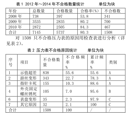 3.提出相應(yīng)措施,解決存在問題,提高壓力表合 格率