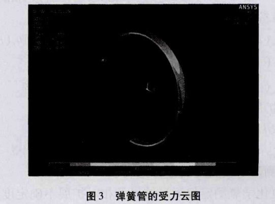 壓力表的在受到外加壓力的情況下,彈簧管的半徑 比沒有施加作用力的情況下的半徑增大,其變化的云圖 如圖2所示: