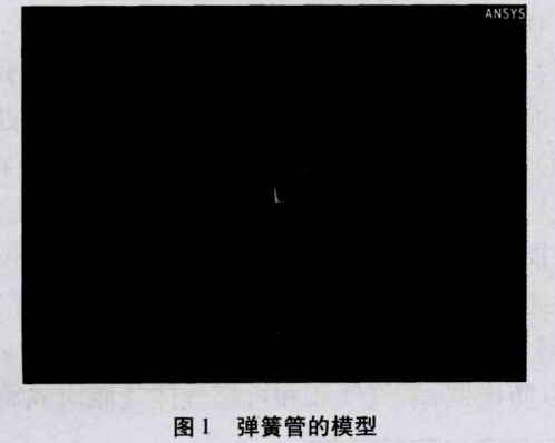 為了研究的簡便在Ansys中建立彈簧管的橫截面模 型,其中模型的角度為270°,橫截面的內半徑為55mm, 彈簧管的厚度為1.2mm。