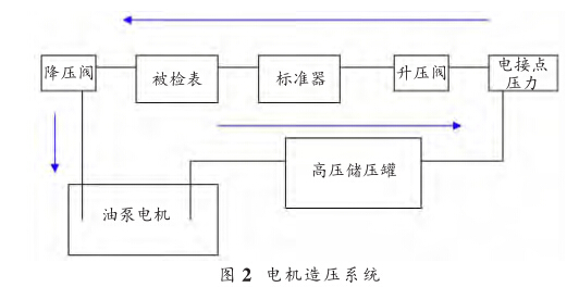 如圖2所示,造壓系統是通過電接點壓力表(或壓力 控制器油泵控制的。