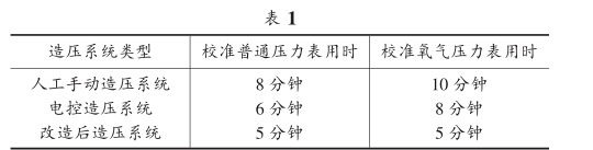 通過對高壓造壓系統改造前面的數據分析,新的系統 提升了工作效率,節省了校準成本,取代了油水分離器,給 檢測人員在曰常檢測中帶來很大便利,保證壓力表檢定校 準工作的有序進行。