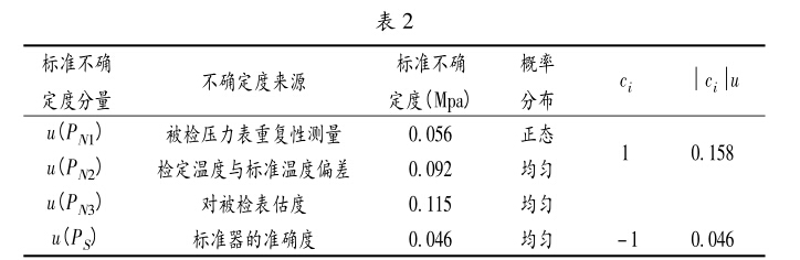 輸入量Pn的標準不確定度主要由1)被檢壓力表 重復性測量引入的標準不確定度;(2)檢定溫度與標準 溫度偏差引入的標準不確定度;(3)對被檢表估度引入 的標準不確定度。
