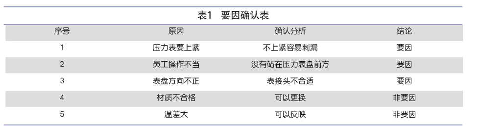 對策1針對的要因是:壓力表要上緊,主要采取了以 下措施:
