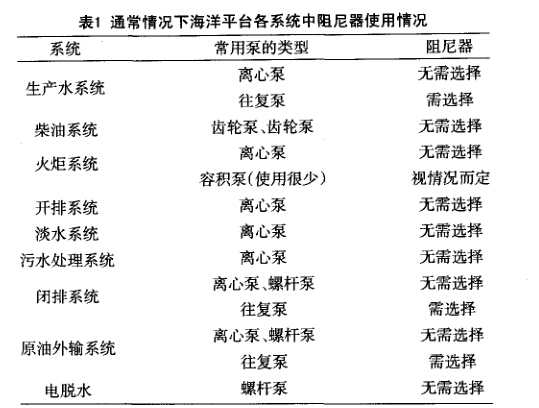 通常情況下海洋平臺(tái)各系統(tǒng)中阻尼器使用情況,見表1。