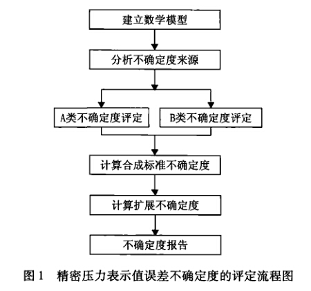 精密壓力表示值誤差不確定度的評定流程如圖1 所示0