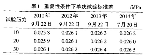 2.1.1采油測(cè)試壓力表檢定裝置重復(fù)性測(cè)量
