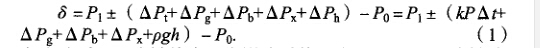 式(1)中:A:為被檢表溫度影響系數,取0.000 4; P為被檢 表量程;A f為檢定時環境溫度與標準;p為檢定時使用的介 質的密度(水取1 x 103 kg/m3,變壓器油取0.86 x 103 kg/m3, 蓖麻油取0.93 x 103 kg/m3); g為當地重力加速度(安慶地區 取9.793 6 m/s2 ); h為被檢表指針軸與標準表取壓口的高度差。