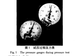 按TSG R0004—2009?固定式壓力容器安全技 術監察規程》及GB 150. 1 ~ 150. 4—2011《壓力容 器》有關壓力容器壓力試驗的要求,在試壓過程中 經常出現所用兩個量程相同并且經過校驗的壓力表 指針示值之間的差值(通常稱之為“誤差值”)。簽 于這種情況,對壓力表誤差值控制范圍應作相應的 規定。