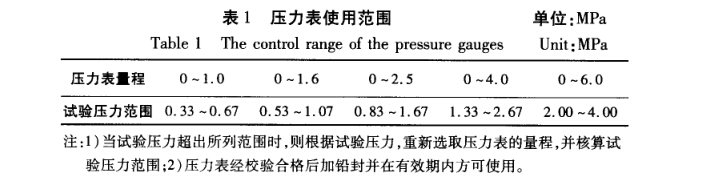 按壓力表量程在1.5倍~3倍的試驗壓力之規 定,壓力表的使用按表1規定的使用范圍選取。
