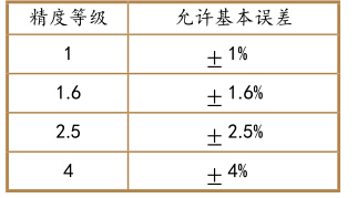壓力表的精度等級對應允差關 系如下表: