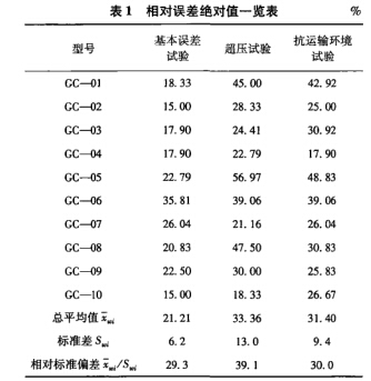 (2)相對標準偏差反映了各次試驗中樣本相 對誤差絕對值的分散程度,可以看出,基本誤差試驗和抗運輸環境試驗的值很接近,而超壓試驗 超出基本誤差試驗和抗運輸環境試驗約1/3,說明 超壓實驗加強了樣本相對誤差絕對值的分散性, 從而能夠反映出各樣本壓力表的抗超壓性能,結 果表明各樣本所用的彈性元件抗超壓性能差別 較大。