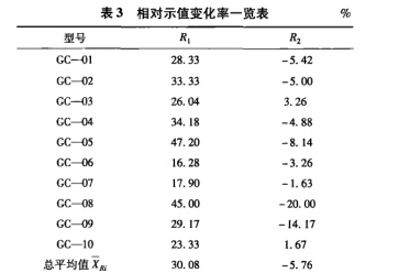 為研究相鄰兩次試驗示值的變化規律,引入 了相對示值變化率的概念,即相鄰兩次試驗,正、 反行程中壓力表同一點示值變化平均值與最大允 許誤差之比,用百分數表示,反映相鄰兩次試驗 同一點示值的變化情況。