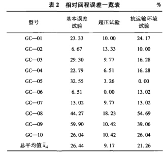 R2:抗運輸環境試驗相對示值變化率,反映 了抗運輸環境試驗示值與超壓試驗示值的差別。
