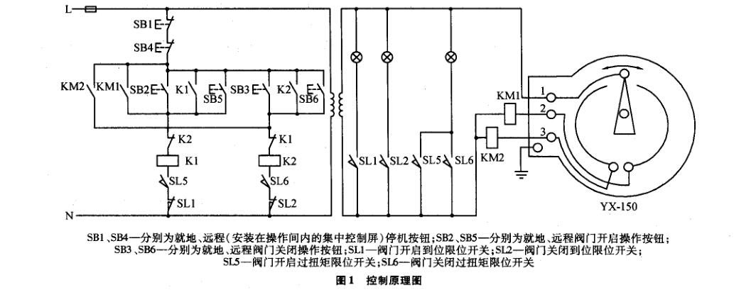 電動閥門基本控制原理是利用可逆式磁力啟動 器實現對閥門驅動電動機的正反轉控制,以達到對 閥門的開啟、關閉和停止操作。這種工作方式主要 依靠操作人員的經驗實現對閥門的控制。在開啟閥 門時很容易形成水泵長時間零流量運行,帶來不必 要的電能消耗。在關閉閥門時很容易形成水錘,縮 短水泵的使用壽命。利用YX - 150電接點壓力表 不需要太大投資便可實現水泵與閥門的聯動,從而 解決上述問題。