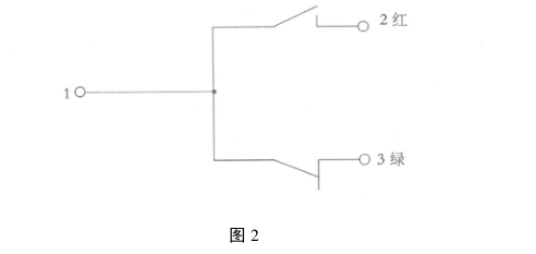 在普通彈簧管壓力表上加裝一套上下限電接點裝 置,即構(gòu)成電接點壓力表,它能夠在設(shè)備達到控制極限壓 力時發(fā)出報警信號。如圖1所示,這是直接作用式電接 點壓力表示意圖。電接點壓力表除壓力指針外,另有兩 根上下限控制指針,分別用來控制壓力的上下限值。通 常下限控制指針一般為綠色,上限控制指針為紅色,轉(zhuǎn)動 安在玻璃蓋外面的旋鈕,可以把兩個控制指針撥動,固定 在所需壓力的刻度位置上。在控制指針上裝有絕緣柱, 分別借助游絲的反力矩與靜觸頭的金屬桿接觸。壓力表 指示指針和控制指針分別裝有觸頭,二觸頭相互絕緣,壓力表外側(cè)有電I器接線端子盒,壓力表內(nèi)角頭 有三艮引線,分別接在電器接線端子盒內(nèi)。用萬用表分別測量 這三根引線,很容易得出這三根接線之間的相互關(guān)系,用 簡圖表示如圖2。