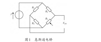 壓力傳感器可以把壓力信號轉換成可測量的電信 號,特點是精度高、線性一致、重復性好' 將壓力的變 化轉換成電阻變化的傳感器被稱為壓阻式壓力傳感器, 當需要進行高精度測量時,通常采用此種傳感器,其內 部是一個惠斯通電橋,電路結構如圖1所示。