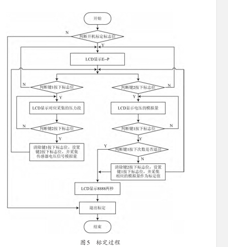 為了減少誤差,保證數字壓力表的精度,可以采用 多點校準,也就是利用多條線段來模擬接近真實的壓 力傳感器的輸出曲線[4]。本文采用的是三點校準的方 法,分別是在零點,半量程和滿量程這三個點,設計精度 在0.5%左右。具體標定過程如圖5所示。