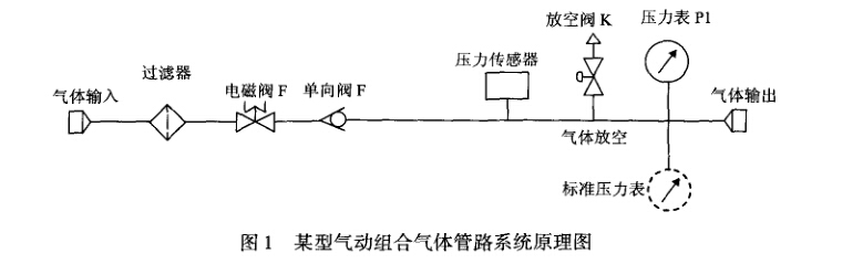 在確保電磁閥F放空閥K關閉和管路內無殘余 氣體的情況下,可在“氣體輸出”處加接管路適配器, 并接上標準壓力表。然后通過控制氣源輸出氣體,比 對標準壓力表和被檢表P1的示值,得到被檢表誤差, 實現計量校準。計量操作完成后拆除管路適配器和標 準壓力表完成計量過程,對被測設備的氣路、儀表不 會造成任何損壞。