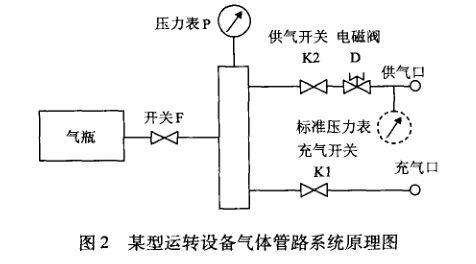 氣體管路系統原理如圖2所示。在確保開關FKlK2關閉和管路內無殘余氣體的情況下,可在供氣口處加接管路適配器,并接上標準壓力表。計量操作  1. 1。