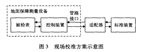 根據以上分析表明,專用測量設備上壓力表的現 場校準是切實可行的。本課題實施現場校準的思路為: 不拆卸壓力表,將壓力校準標準器(通用壓力表校準 通過適配器與被檢壓力表所在的管路接口相連接, 然后經過調節校準臺或被檢設備上對應的控制裝置, 將氣體輸送到被檢表再進行計量校準操作。如圖3 所示。