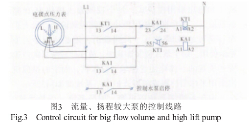 為解決此問題,可將KA2更換為時間繼電器,見 3,使b-c接點接通時延時Us停泵,有效消除起泵 時管網的壓力波動。另外,電接點壓力表應盡可能遠 離水泵安裝,這樣也可以減小泵本體振動及啟停時管 網壓力波動對電接點壓力表接點通斷的影響。