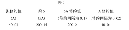 (40. 02 + 40. 04 + 40. 02 + 40. 04)/4 = 40. 03 ;直接修 約,其結(jié)果為40. 03。由于該表分度值為0. 2 ,讀數(shù)時(shí)按 照1/ 10估讀,因此修約間隔為0. 02 ,而上述修約結(jié)果并 非0.02的整數(shù)倍,因此結(jié)果錯(cuò)誤。正確的修約過程如表 2所示。