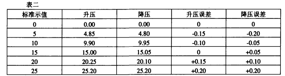 由表二可以看出,重新調整后的壓力表誤差已在最大允許誤差范圍內,屬合格壓力表。