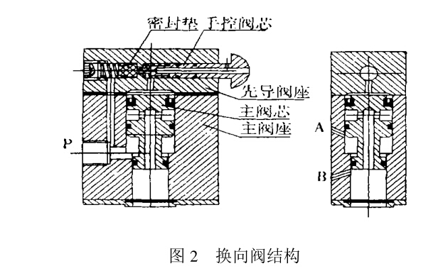 非標準二位四通手控換向閥的工作原理為:當 P 口進氣時,P 口與A 口相通,氣缸右端進氣,夾具 夾緊工件。需要拆卸工件時,按動手控閥芯,手控閥芯頭部壓緊密封墊并 推動密封墊打開先導閥口,主閥芯上端進氣,主閥芯 換向,P 口與B 口接通,A 口與排氣口接通,氣缸前 端進氣,后端排氣,氣缸活塞帶動夾具頂芯向右運 動,彈簧夾頭松開工件。松開手控閥芯,密封墊復 位,主閥芯上端通過手控閥芯排氣口排除氣體,主閥芯大端作用力大于小端作用力,主閥芯復位,從而實 現了工件的松開和夾緊。