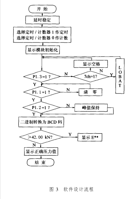 復(fù)位,儀表就能正常工作。該顯示器顯示時(shí)間間隔 為250 ms^即250 ms采集一次數(shù)據(jù),也就是滿250 ms就中斷一次。該表的最大量程為42. 00 kN, 如大于42.00kN就會(huì)顯示出錯(cuò)信息“ E* * ”。如 小于42. 00 kN,則顯示正確的壓力。