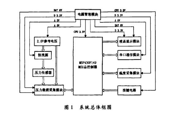 本系統(tǒng)旨在設(shè)計(jì)一款高精度微功耗的數(shù)字壓 力表,因此髙精度和微功耗是本設(shè)計(jì)的重點(diǎn)和難 點(diǎn),必須從總體設(shè)計(jì)時就加以考慮。系統(tǒng)總功耗 一般包括元件級功耗和系統(tǒng)級功耗⑴,需要從這 兩方面人手才能達(dá)到系統(tǒng)微功耗的目的。