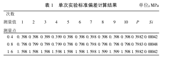 把1. 6 MPa 0.4級(jí)彈簧管式壓力表在0. 4 MPa、 0. 8MPa、1. 6MPa重復(fù)性條件下分別測(cè)量10次,獲得3組 測(cè)量列,具體數(shù)字見(jiàn)表1。