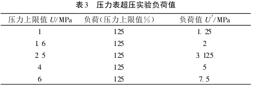 超壓實驗中,壓力上限值U<160MPa時,當U增 加,如應單調遞增,但事實并非如此。按照表2的計算 方式,壓力上限為10MPa和16MPa的壓力表超壓實驗負 荷值以及超壓量計算結果見表4: