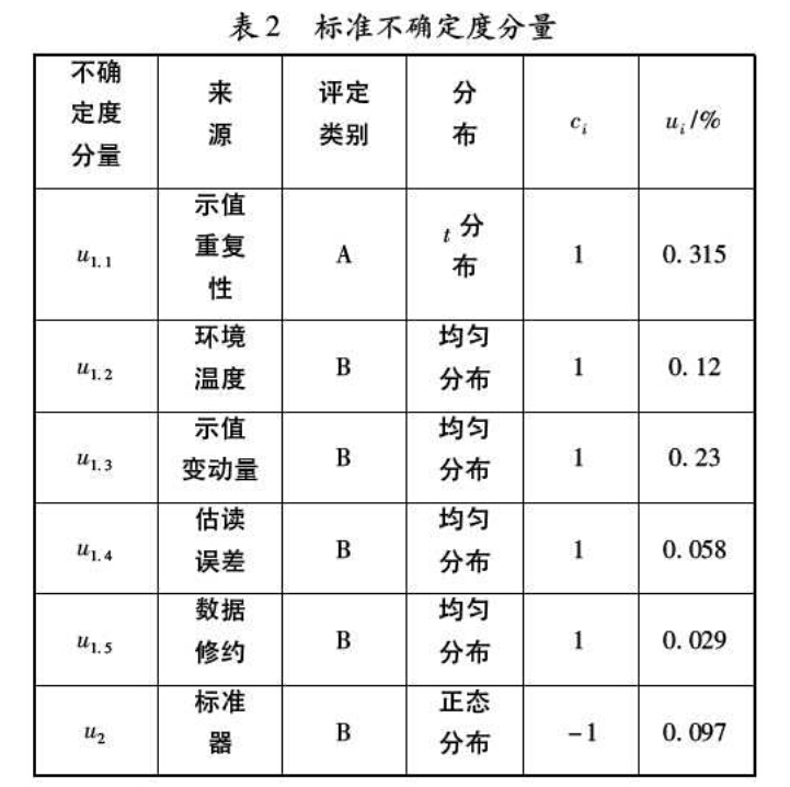 3.5標(biāo)準(zhǔn)不確定度分量一覽表 各標(biāo)準(zhǔn)不確定度分量見(jiàn)表9