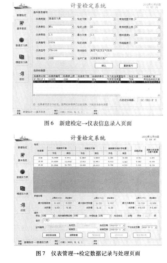 壓力表檢定自動化是當前壓力計量檢測技術(shù)發(fā)展的大趨勢,智能壓力校驗儀具有測量精度高、操 作簡單、便于與計算機相連等特點,可實現(xiàn)檢定自動化,特別適合于對各型艦艇上眾多壓力儀表進行檢 定。以智能壓力校驗儀為標準器、以Visual C + + 6.0為軟件開發(fā)平臺,采用反校法構(gòu)建的壓力表自動 檢定系統(tǒng),實現(xiàn)了壓力儀表的快速可靠檢定、報表自動生成與檢定數(shù)據(jù)管理。