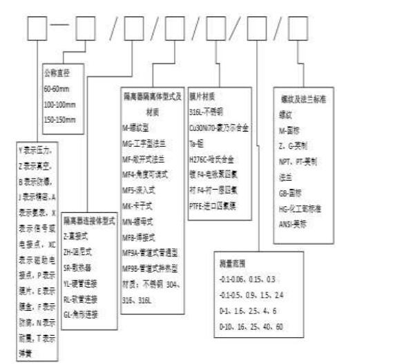 1.1.5壓力表的型號(hào)表示方法:例如:型號(hào)為Y-100/1.6/M的壓力表,表示的是普通壓 力表、表盤直徑100mm壓力等級(jí)為1.6MP國(guó)標(biāo)螺紋。