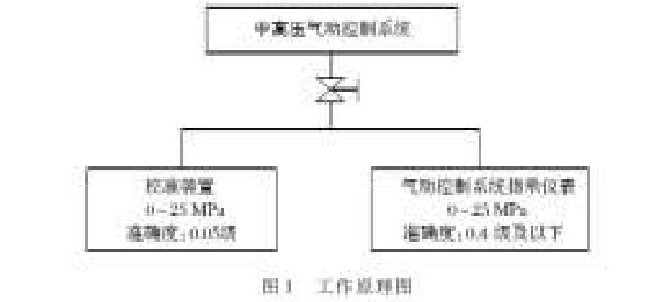 用現場校準的方法,解決中高壓氣動控制系統中禁油禁水壓力儀表的校準工作,同時實現對中高壓控制系統的壓力特 性進行檢測。