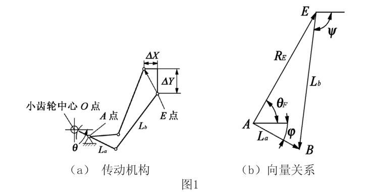 為了能夠更好的表示壓力儀表之中所具有的傳遞功 能,則可以通過曲柄連桿二桿的傳動機構實施算法分析, 通過向量化之后運動關系進行表示,則應當能夠充分滿足 以下關系式: