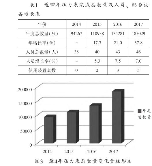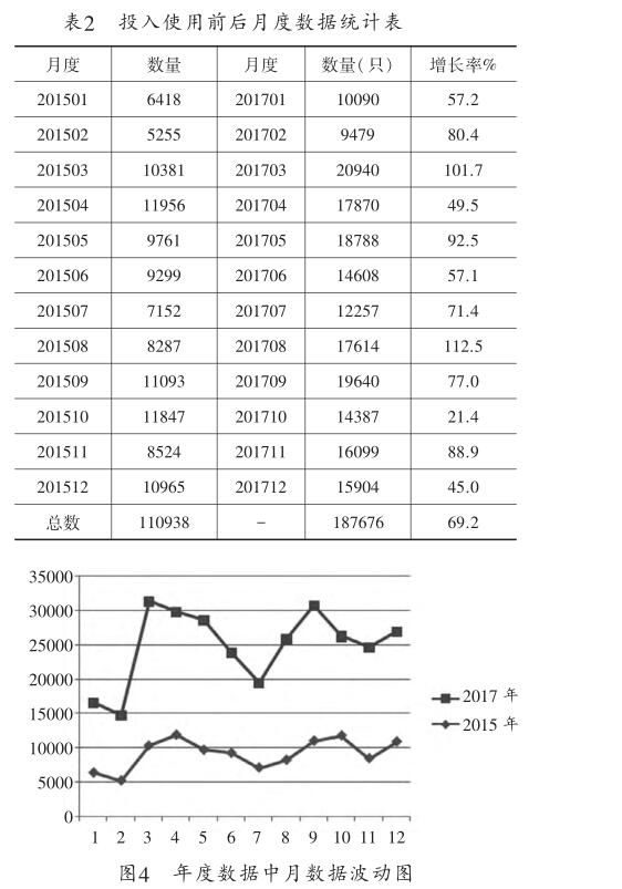 在項目研發階段,此裝置的推廣是逐步實現的。 本次驗證通過裝置使用前后一年每月的壓力表完成 數量進行了比對,選取試用前的2015年和試用后一年 2017年度的數據進行比較,數據如表2所示。