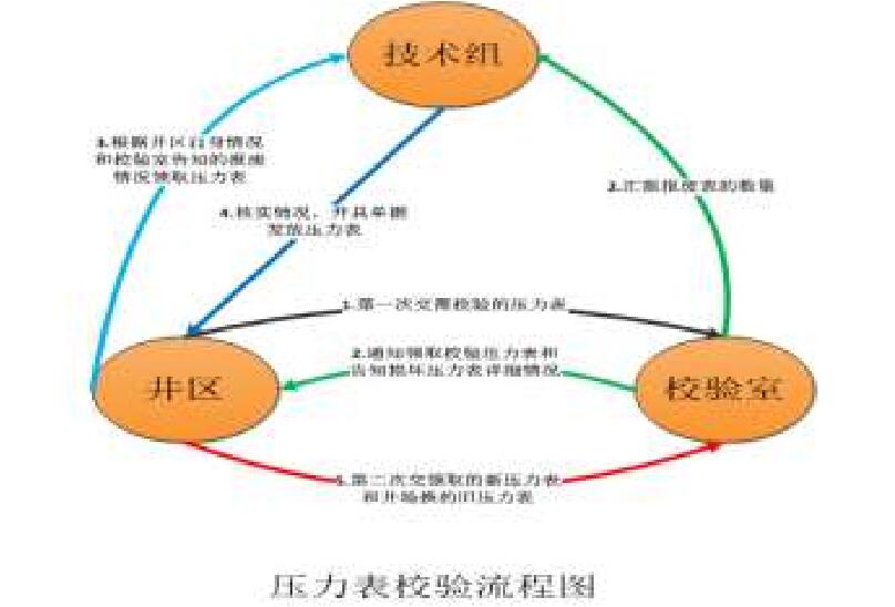 (4)井區(qū)更換井場壓力表,將井場更換下來的壓力表 和損壞數(shù)量的壓力表第二次交校驗(yàn)室校驗(yàn)。