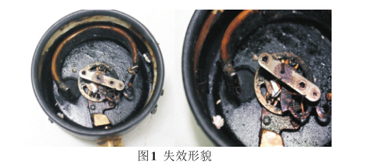 彈簧管式壓力表是以彈簧管為敏感元件的壓 力測量儀。彈簧管在壓力和真空的作用下,產(chǎn)生彈 性形變,引起管端位移,其位移通過扇形齒輪傳動機 構(gòu)進行放大,傳遞給指示裝置,顯示被測壓力。油 田采油樹上的油壓壓力表用來監(jiān)測油井中油管的 壓力,給操作人員和技術(shù)人員提供重要的參數(shù)信 息。某油田巡井人員在巡檢時發(fā)現(xiàn)井場大面積污 染,經(jīng)檢查確認油污是由采油樹上型號為Y-100的 壓力表密封失效導致,表內(nèi)全部是油污,表盤破 裂。該壓力表失效形貌如圖1所示。油田后來又發(fā) 生幾起壓力表失效事故均為同期購人的型號Y-100 壓力表,這給該油田安全生產(chǎn)活動帶來極大的損 失。為找出該類壓力表失效原因,避免此類事故再 次發(fā)生,對該起壓力表失效事故進行了調(diào)查分析。